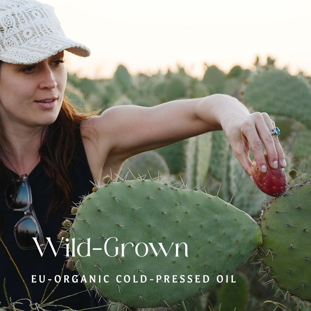 Barie or Prickly Pear Cactus Seed Oil comes from the wild cacti forests in Tunisia. It is wild-grown and harvested by hand. The cold-pressing and the seeds are EU-organic certified.
